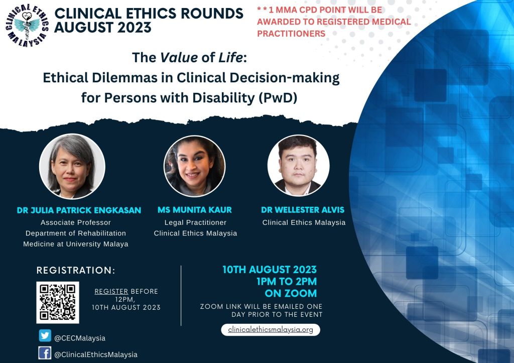 Dr. Aaron Lai, an Emergency Physician at Sarawak General Hospital presented a compelling case that highlights an ethical dilemma encountered when managing a Jehovah’s Witness patient who requires a surgery and blood transfusion. The discussion also covered the complexities surrounding Jehovah’s Witnesses advanced care directives. The event was moderated by Ms Munita Kaur.
