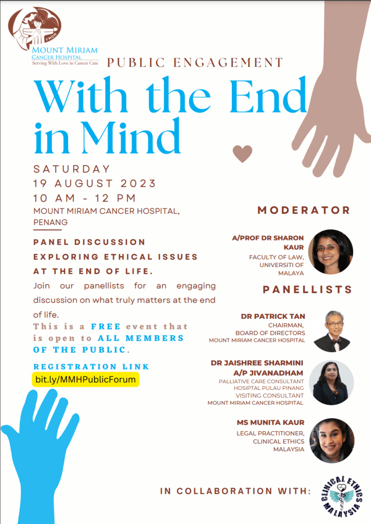 We were privileged to have Dr Ednin Hamzah and Dr Sylvia McCarthy from Hospis Malaysia to share with us significant ethical issues that are often overlooked in palliative care which may often result in poor clinical decision making and great distress. The event was moderated Dr Mark Tan Kiak Min.